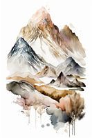 Schilderij Misty Mountain Range - Dit schilderij is een prachtige weergave van bergen in zachte, neutrale kleuren op een witte achtergrond. De bergen lijken te zweven in de mist, waardoor er een gevoel van rust en sereniteit ontstaat. De waterverftechniek geeft het geheel een zachte uitstraling, waardoor het perfect past in een rustgevend interieur.