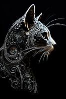 Schilderij Moderne Kat - kat schilderij abstract witte lijnen