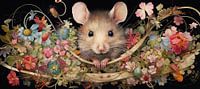 Details: muis, bloemen, krans, natuur, schattig, fauna, flora, lief, decoratief, kunst