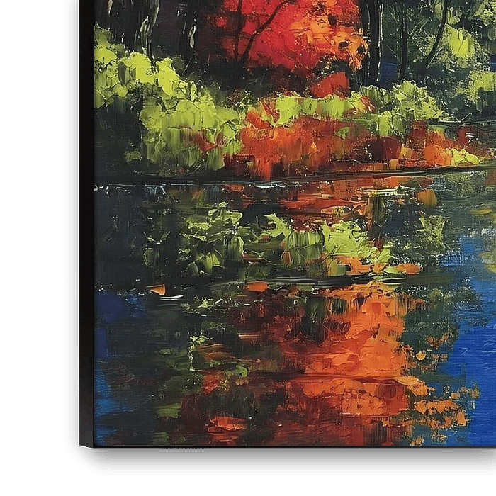De natuurbeelden in dit schilderij nodigen uit tot ontspanning en reflectie, waardoor het een perfecte toevoeging is voor de woonkamer, slaapkamer of werkruimte.