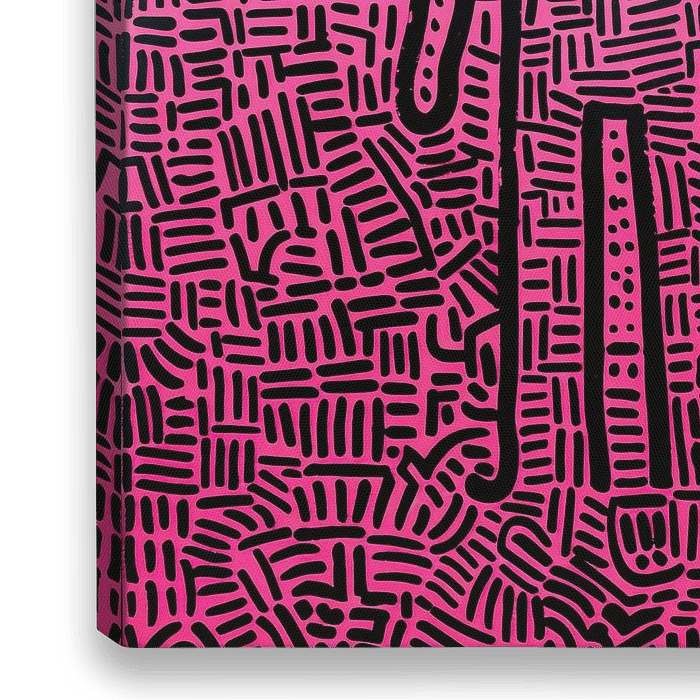 Schilderij Neon Pop Art | Doolhofdanser - vrolijke figuur in neonroze labyrint