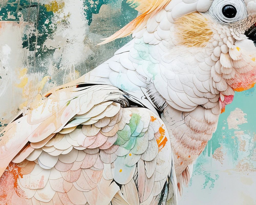 Details: papegaai, vogel, abstract, kleurrijk, dier, kunst, exotisch, canvas, moderne kunst, decor