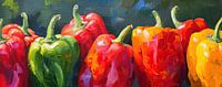 Details: paprika, kleurrijk, schilderij, groente, canvas, keukenkunst, modern, expressief, acryl, voedsel