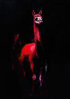 Details: lama, rood, zwart, schilderij, dier, abstract, modern, kunst, expressief, portret