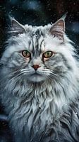 Schilderij: Sneeuwkat In Kleurrijke Omgeving van Blikvanger Schilderijen