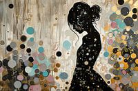 Details: vrouw, silhouet, goud, bubbels, modern, abstract, contrast, aquablauw, zwart, wit, Warm…