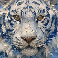 Details: tijger, schilderij, blauw, wit, abstract, dier, kunst, expressief, oog, krachtig