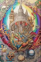 Het schilderij Transcending Dimensions is een kleurrijk schilderij uit onze kennis en wetenschap album. Het is enerzijds een eerbetoon aan de wetenschap en anders een uitnodiging om je te laten inspireren.