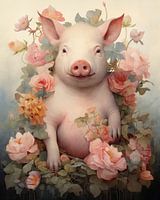 Details: varken, rozen, bloemen, zoogdier, natuur, roze, groen, beige