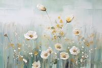 Groene tinten stralen een gevoel van rust en natuur uit. Dit schilderij is geschilderd met dit in gedachte. Gouden accenten maken het schilderij extra sprankelend.