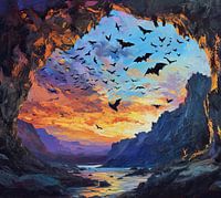 Schilderij Vleermuizen Zonsondergang