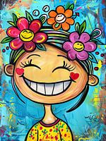 Koop dit bloemen kunstwerk Schilderij Vrolijk Meisje | Lachende tuin van ARTEO Schilderijen op canvas, aluminium dibond, (ingelijste) fotoprint, behang en ArtFrame, op maat geprint in Fine-Art kwaliteit.