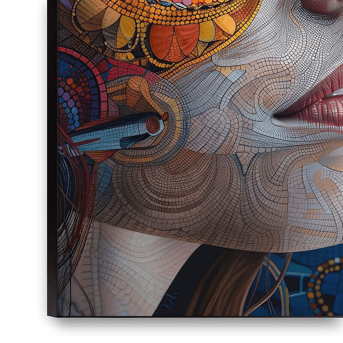 Koop dit portret Schilderij Vrouw Abstract | Schilderij Vrouw Modern | Groot Schilderij Vrouw Gezicht van AiArtLand op canvas, aluminium dibond, (ingelijste) fotoprint, behang en ArtFrame, op maat geprint in Fine-Art kwaliteit.
