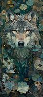 Schilderij Wolf Natuur - Wolf omringd door flora