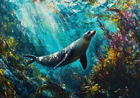 Schilderij Zeehond - schilderij zeehond onder water