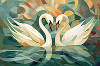 Details: zwanen, reflectie, liefde, water, abstract, wit, zwart, oranje, groen, blauw, beige