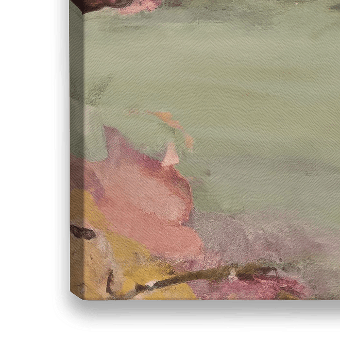 Schilderij abstract landschap in vierkant formaat, pastelkleuren. Woonstijl modern, woonstijl eclectisch. Op een abstract werk zoals dit raak je niet snel uitgekeken. Mooi in iedere ruimte: woonkamer, slaapkamer, hal, praktijkruimte en kantoor.