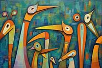 Details: vogels, abstract, kunst, schilderij, kleurrijk, modern, stijlvol, decoratief, expressief, muurdecoratie
