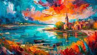 Schilderij met bergen en meer van Mustafa Kurnaz