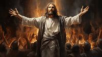 Schilderij van Jezus Christus, in een wit gewaad, aquarel kunstontwerp