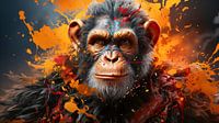 Schilderij van een apengezicht met kleurrijke verfspatten