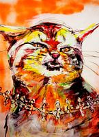 Schilderij van een boze kat. Schetsmatig geschilderd met veel kleur en expressie.