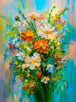 Een werk van een plukboeket met veldbloemen in frissen natuurlijke kleuren.