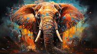 Schilderij van een paardengezicht met kleurrijke verfspatten