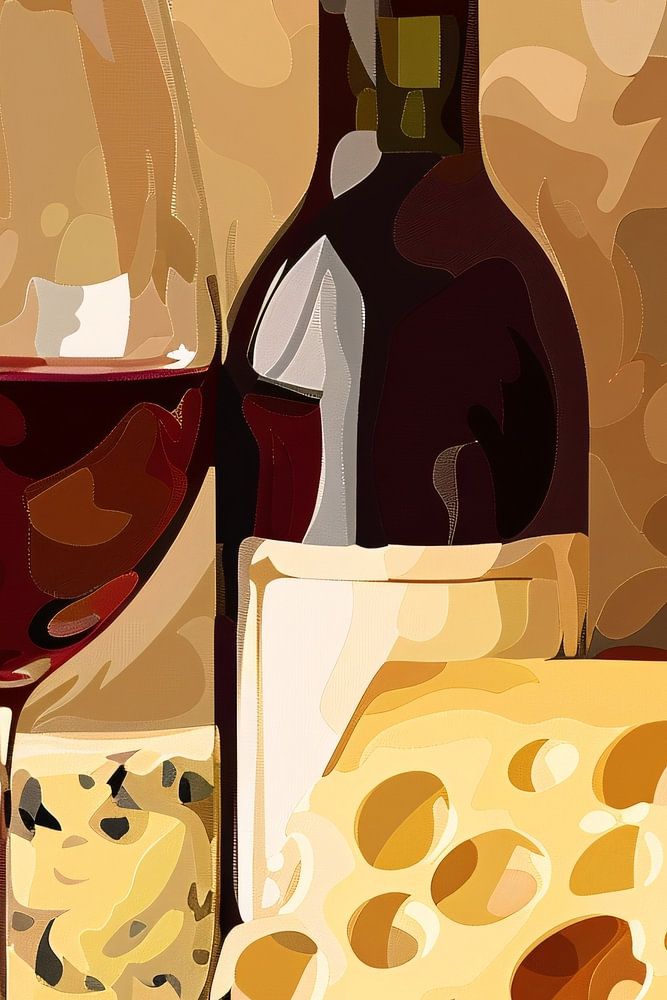 Deze prachtige schilderij vangt de essentie van een luxe avond met wijn en kaas. De warme, rijke kleuren en gedetailleerde weergave van de kaas en wijnfles creëren een sfeer van verfijning en comfort. Dit kunstwerk zou prachtig staan in een eetkamer of woonkamer, en is perfect voor liefhebbers van culinaire geneugten. Het roept een gevoel van gezelligheid en elegantie op, ideaal voor iedereen die graag tijd doorbrengt met vrienden en familie onder het genot van goed eten en drinken. Een geweldige aanvulling voor elk interieur dat warmte en klasse wil uitstralen.