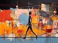 Dit schilderij spat van het doek met intense expressie. Abstracte symbolen, felle kleuren en krachtige lijnen vormen een levendige chaos van emotie. Zijn kenmerkende kroontjes en gestileerde teksten versmelten tot een unieke visuele taal. Het werk lijkt een spontane eruptie van creativiteit, een poëtische dans tussen chaos en orde, typerend voor Rebelse kunstenaar unieke stijl.