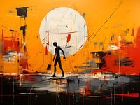 Dit schilderij spat van het doek met intense expressie. Abstracte symbolen, felle kleuren en krachtige lijnen vormen een levendige chaos van emotie. Zijn kenmerkende kroontjes en gestileerde teksten versmelten tot een unieke visuele taal. Het werk lijkt een spontane eruptie van creativiteit, een poëtische dans tussen chaos en orde, typerend voor Rebelse kunstenaar unieke stijl.