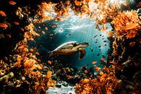 Koop dit landschapskunstwerk Schildpad in kleurrijk rif van Art & Soul Creations op canvas, aluminium dibond, (ingelijste) fotoprint, behang en ArtFrame, op maat geprint in Fine-Art kwaliteit.