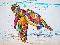 Kleurrijke schildpad met een witte achtergrond van de kunstenaar Renate Rolefes.