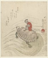 Schildpad met aapje, Hiroshige (I) , Utagawa, 1824