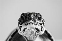 Dit fascinerende zwart-wit portret van een schildpad benadrukt de fijne details en de structuur van zijn schild. De kalme, vastberaden uitstraling van het dier is perfect vastgelegd in de minimalistische foto. Een ideaal kunstwerk voor natuurliefhebbers en bewonderaars van tijdloze elegantie, dat een sfeer van sereniteit en stabiliteit…