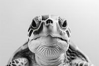 Dit fascinerende zwart-wit portret van een schildpad benadrukt de fijne details en de structuur van zijn schild. De kalme, vastberaden uitstraling van het dier is perfect vastgelegd in de minimalistische foto. Een ideaal kunstwerk voor natuurliefhebbers en bewonderaars van tijdloze elegantie, dat een sfeer van sereniteit en stabiliteit brengt in elke kamer.