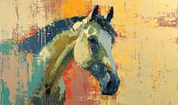 Dit trendy kunstwerk is een portret van een paard, weergegeven met een abstracte inslag.