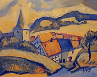 Dorpje in Zuid Limburg, verscholen tussen de heuvels. Vakwerkhuisjes, graanvelden en een Middeleeuws kerkje. Lieflijk en landelijk.
