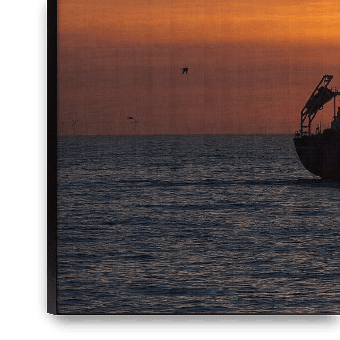 Koop de foto Schip bij zonsondergang van Ab Wubben op canvas, aluminium dibond, (ingelijste) fotoprint, behang en ArtFrame, op maat geprint in Fine-Art kwaliteit.