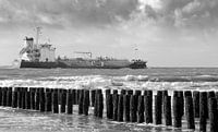 Voorbij varend schip langs de kust van Zoutelande ( Zeeland )