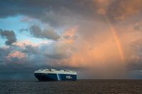 Koop de foto Schip met regenboog (liggend) van Jan Georg Meijer als print op canvas, aluminium dibond, (ingelijste) fotoprint, behang en ArtFrame. Voor jou op maat geprint in Fine-Art kwaliteit.
