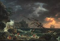 Claude-Joseph Vernet was een van de bekendste landschaps- en zeeschilders van Europa in de tweede helft van de 18e eeuw. Na zijn eerste scholing in zijn geboortestad Avignon en in Aix-en-Provence reisde de 20-jarige kunstenaar in 1734 naar Rome. Hij studeerde er korte tijd bij de in Frankrijk geboren zeeschilder Adrien Manglard, maar vestigde er al snel zijn eigen reputatie. Vernet maakte schetsuitstapjes in en rond Rome en langs de Middellandse-Zeekust tot in Napels, waarbij hij scènes vastlegde die het basisrepertoire voor de rest van zijn lange carrière vormden. Hij werd al snel gegeerd door Romeinse verzamelaars, maar ook door Franse diplomaten in Italië en de vele rijke reizigers uit het noorden van de Alpen, vooral de Britten die hun Grand Tour maakten. Voor deze opdrachtgevers schilderde Vernet vergezichten van Rome en Napels, en denkbeeldige landschappen en kustscènes - vaak met z'n tweeën of met z'n vieren.