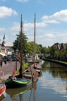 Schipluiden The Netherlands View of the village along the river with typical Dutch sailing boats.