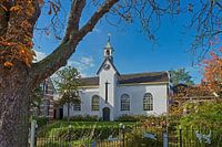 Oud kerkje in het centrum van Kats op Noord-Beveland, Zeeland. Buitenzijde wit gepleisterd, oorspronkelijk daterend uit 1659. Multifunctioneel gebruik. In een stralend zonnige ambiance.