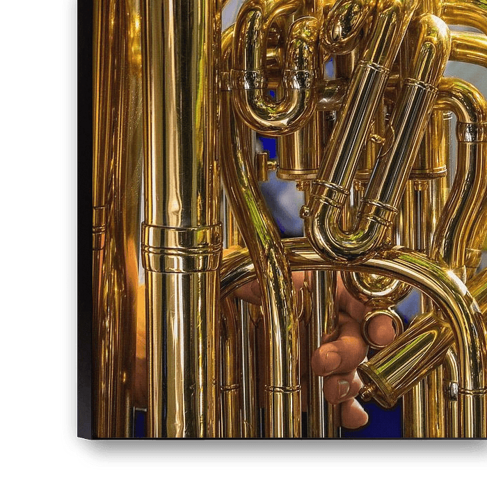 Close up van een glanzende tuba in de zon buiten in Nieuw Zeeland