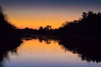 Windstil 's avonds met een bootje over de verlaten Chobé rivier in de okavanga delta in Botswana