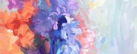 Dit abstracte werk is een kleurrijke en dynamische compositie waarin warme en koele tinten elkaar harmonieus aanvullen.