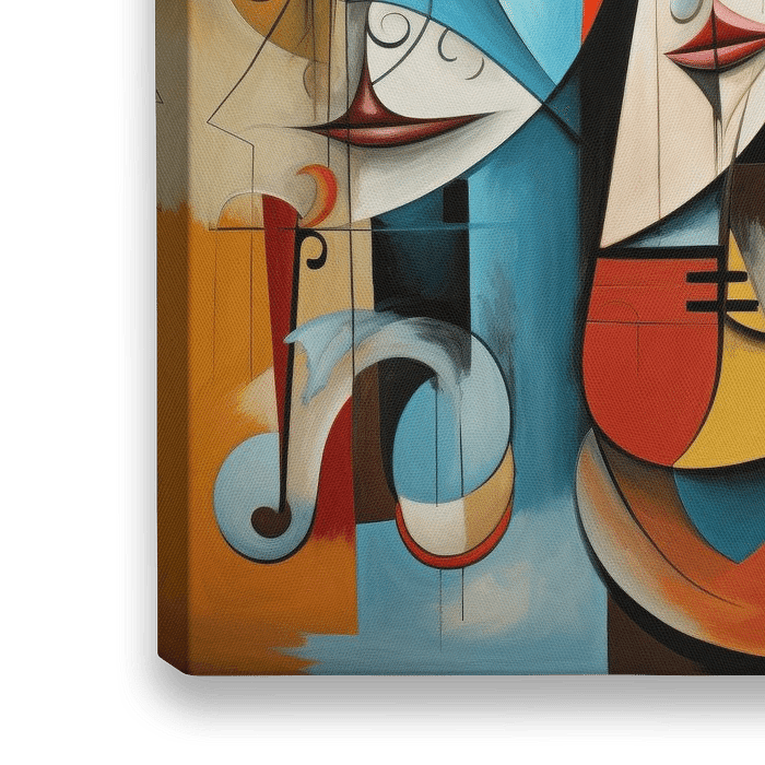 Een abstract portret in een schilderstijl die doet denken aan Picasso.