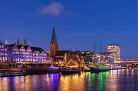 Weser met Schlachtezauber kerstmarkt en Martinikerk , Bremen, Duitsland