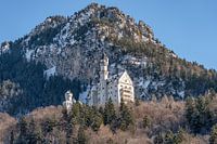 Het prachtige Schloss Neuschwanstein op een mooie zonnige winterse dag vanuit Schwangau gezien.